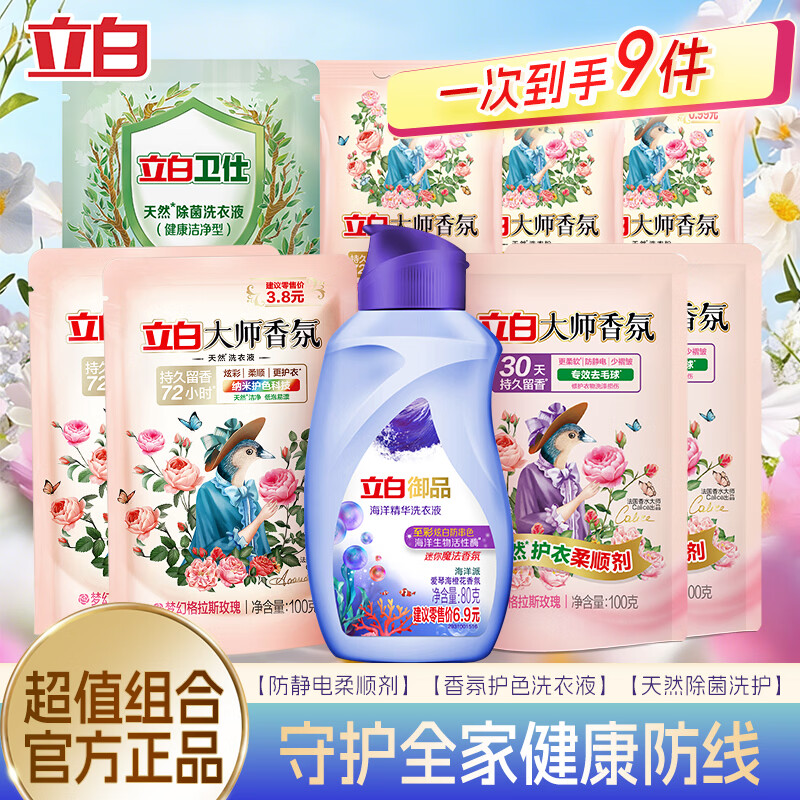 立白大师香氛洗衣液9件套仅9.9元包邮!折合1.1元/件超值抢购
