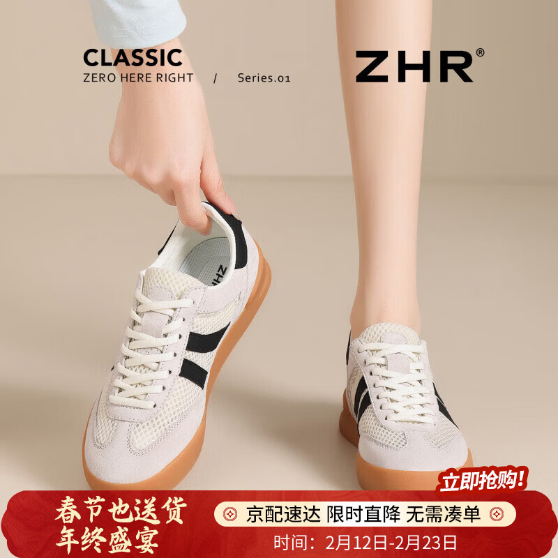 ¥69 ZHR则则板鞋女网面透气休闲时尚德训鞋新款平底经典百搭系带小白鞋女 灰黑色 【网面四季款】 37 119
