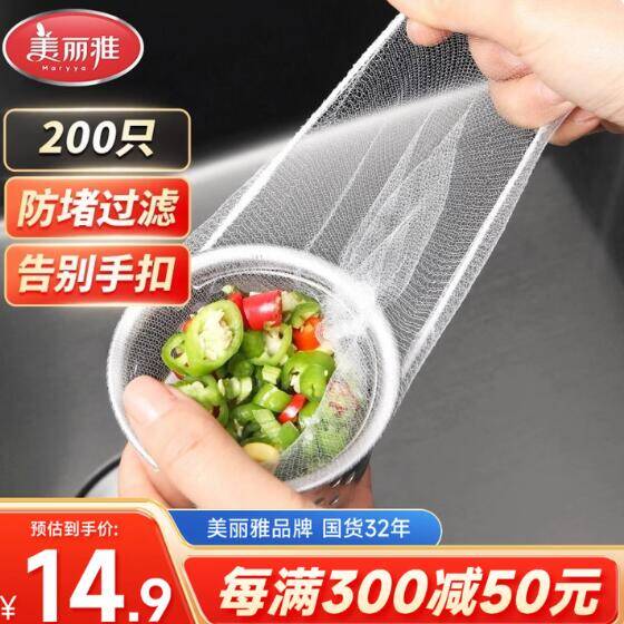 美丽雅水槽一次性过滤网200只仅8.9元!