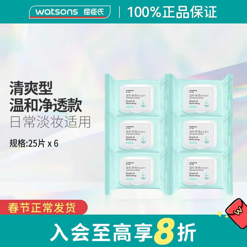 【新年特惠】屈臣氏氨基酸温和净透卸妆湿巾6包装仅30.2元!每包低至5元