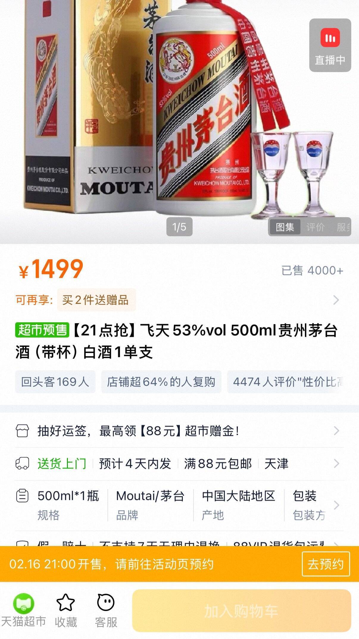 今晚9点天猫超市茅台酒开抢!原价1499元限量发售