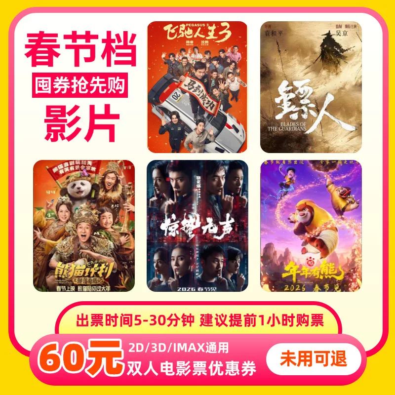 ¥17.2 【春节可用不限影片】单人25元电影票优惠券 20.2