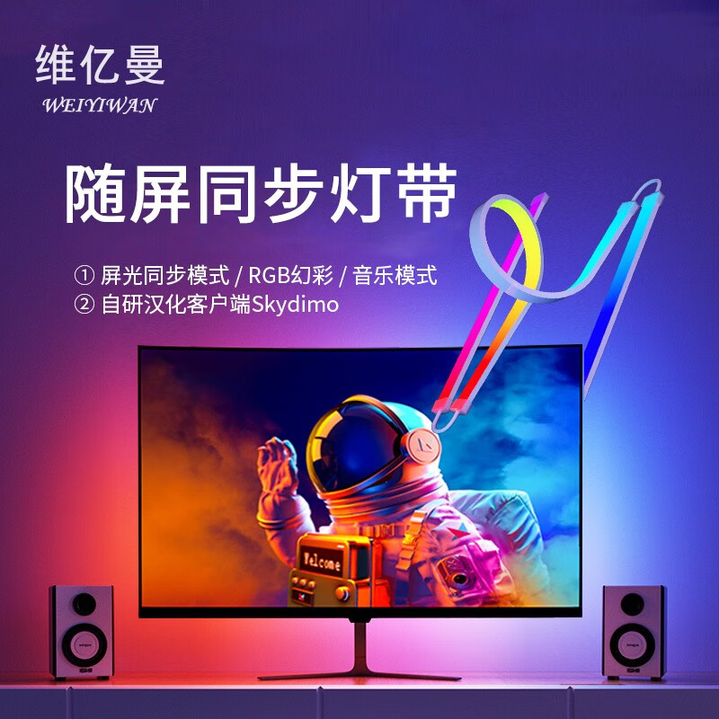 ¥107.82 维亿曼电脑神光同步灯带灯条电脑氛围灯屏幕同光RGB灯声光互动音乐律动 适合27寸显示屏 119.82