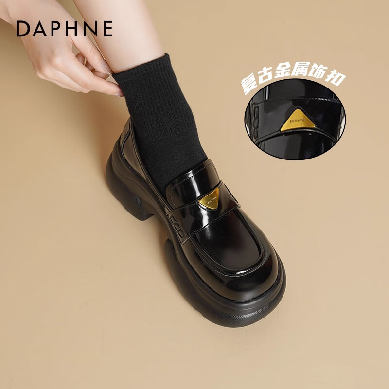 ¥89.9 达芙妮厚底乐福鞋女2025新款秋季增高百搭单鞋女复古英伦风jk小皮鞋JL 黑色 【6.5CM厚底】 40 239.9