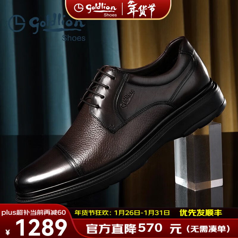 ¥1829 金利来(Goldlion)皮鞋男商务正装鞋男士皮鞋三接头德比鞋婚鞋轻质大底商务休闲皮鞋 棕色 40 1859