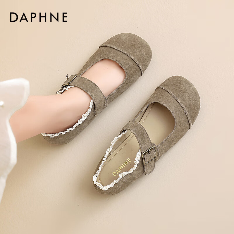 ¥79.9 达芙妮勃肯鞋女款2025春季新款女鞋浅口蕾丝单鞋女森系芭蕾舞风JL 棕色 37 229.9