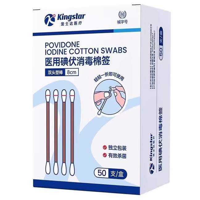 ¥6.9 【签到】金士达医用碘伏棉签50支 9.9