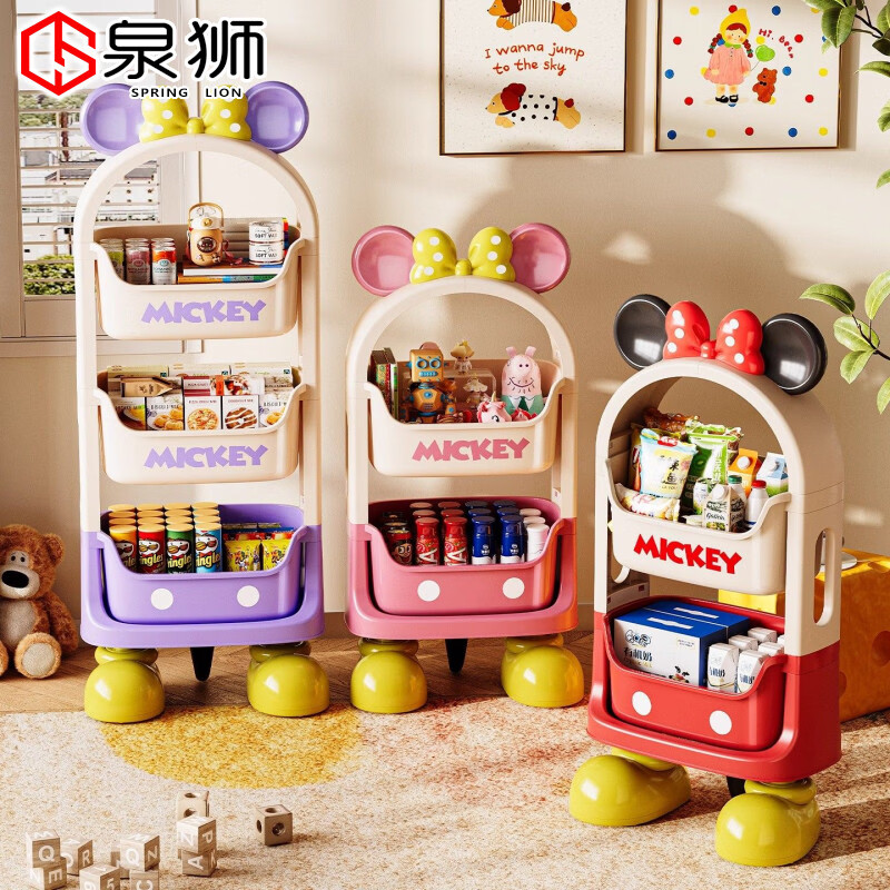 ¥131.19 泉狮迪士尼联名零食置物架可移动小推车客厅多层置物架家用玩具收纳架 粉色【站脚款】2层 141.06
