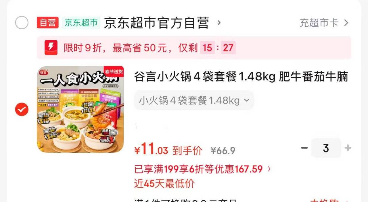 黑五特惠!谷言小火锅4袋套餐,3件下单单价仅12.4元
