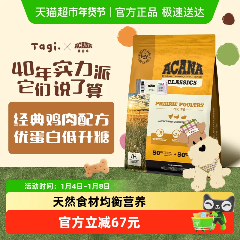 ¥152 Acana爱肯拿狗粮成犬幼犬经典鸡肉犬粮2kg 182