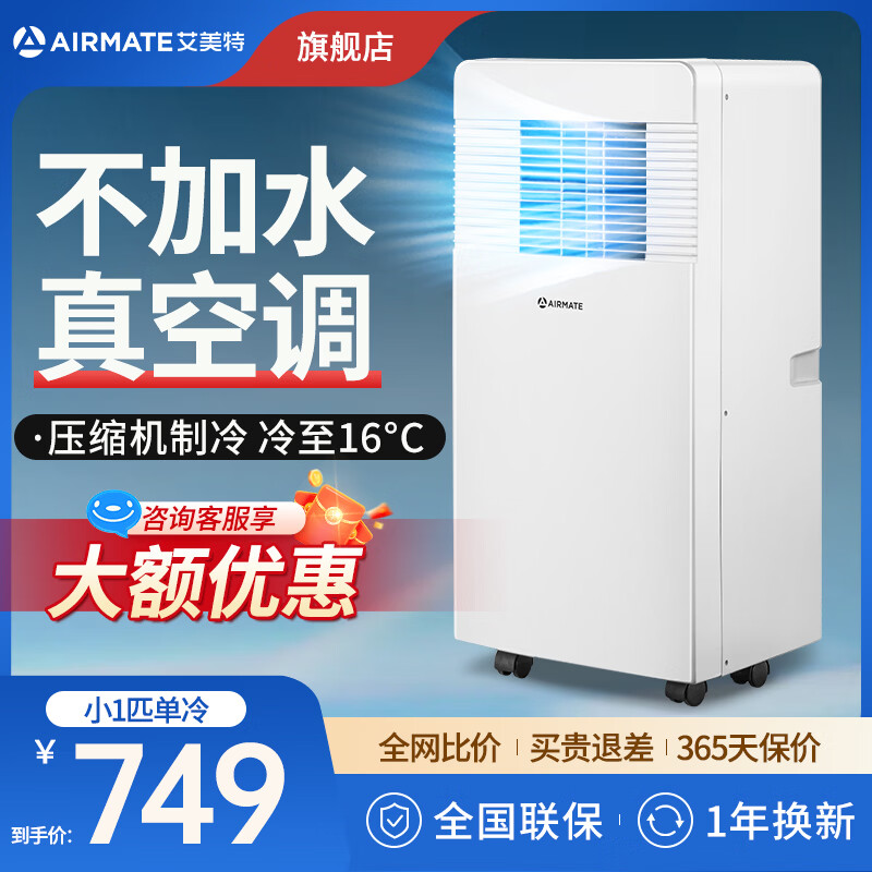 艾美特移动空调小1匹:免安装便携冷暖一体机,到手价仅需748元
