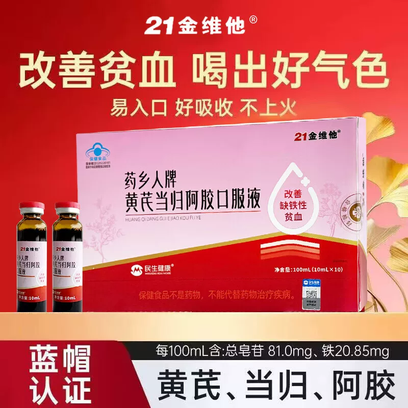 ¥11.9 蓝帽认证!21金维他黄芪阿胶口服液 59.9