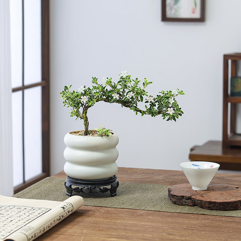 ¥9.9 八芽悬崖六月雪盆栽金边老桩弯枝造型中式禅意盆景客厅桌面好养绿植 六月雪-PVC小甜甜圈盆-密胺托盘 带盆栽好 13.9