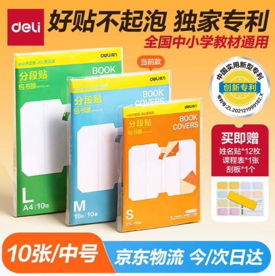 得力文具分段式包书皮仅4.9元!领券再减赠刮板+姓名贴