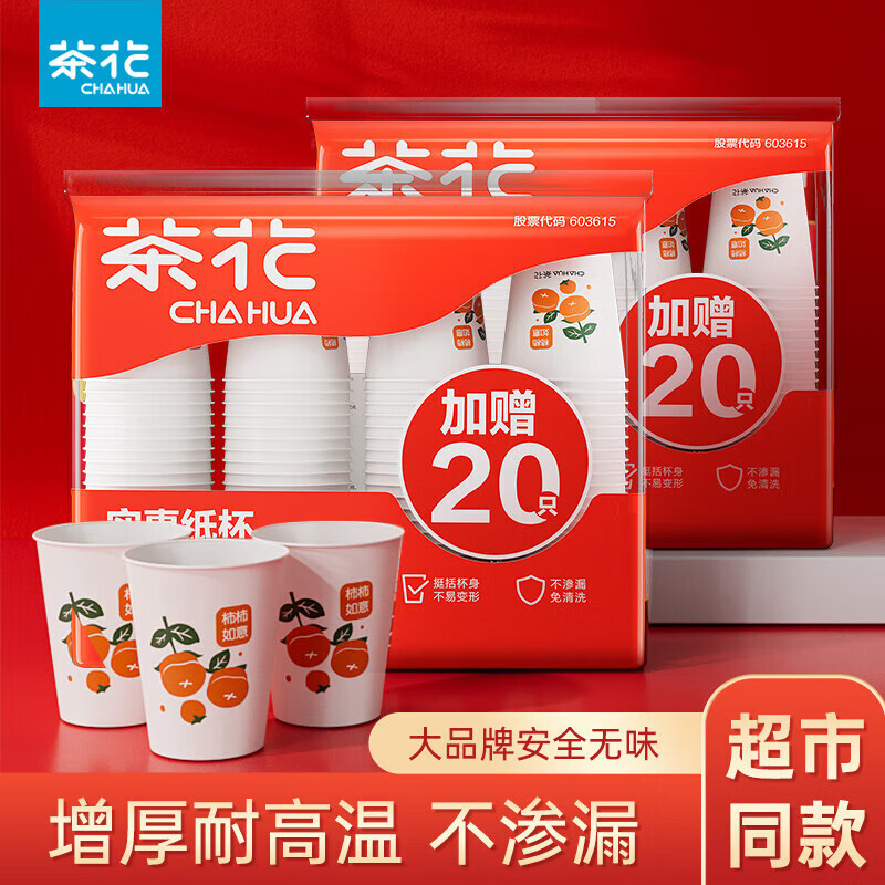 ¥10.9 茶花(CHAHUA)纸杯一次性淋膜纸杯婚庆宴会商务酒店餐厅纸杯不含蜡批发 新年包装【100只】日常家用 新升级,加量不加价 12.9