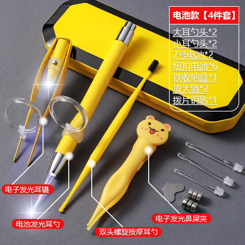 ¥27.8 兮儿掏耳勺挖耳勺发光带灯软头宝宝耳屎儿童用挖耳朵安全镊子可视套装 电池款发光耳勺铁盒【四件套】 35.8