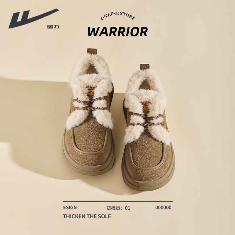 ¥59.9 回力厚底棉鞋女鞋2026冬季新款女士户外加绒加厚舒适御寒百搭休闲鞋 驼色 37 99.9