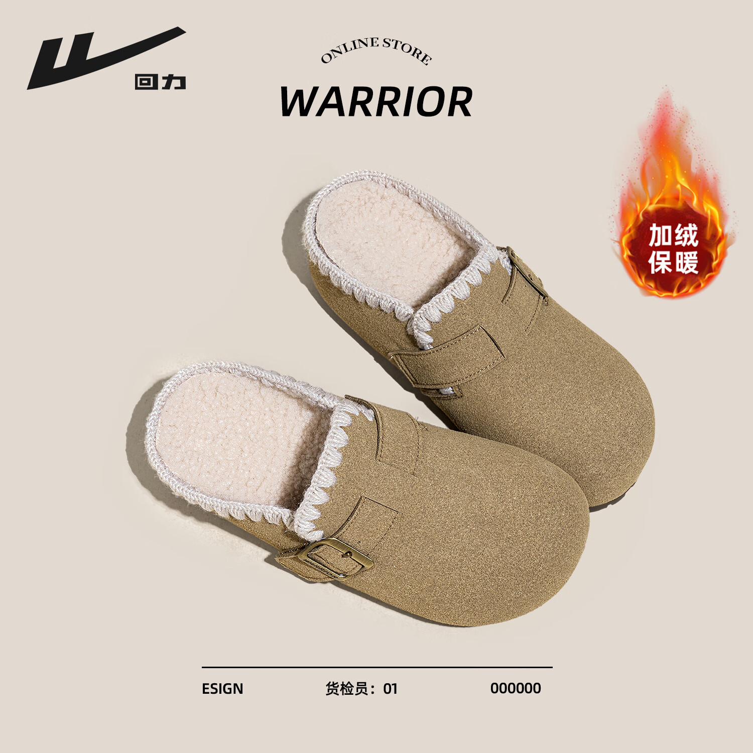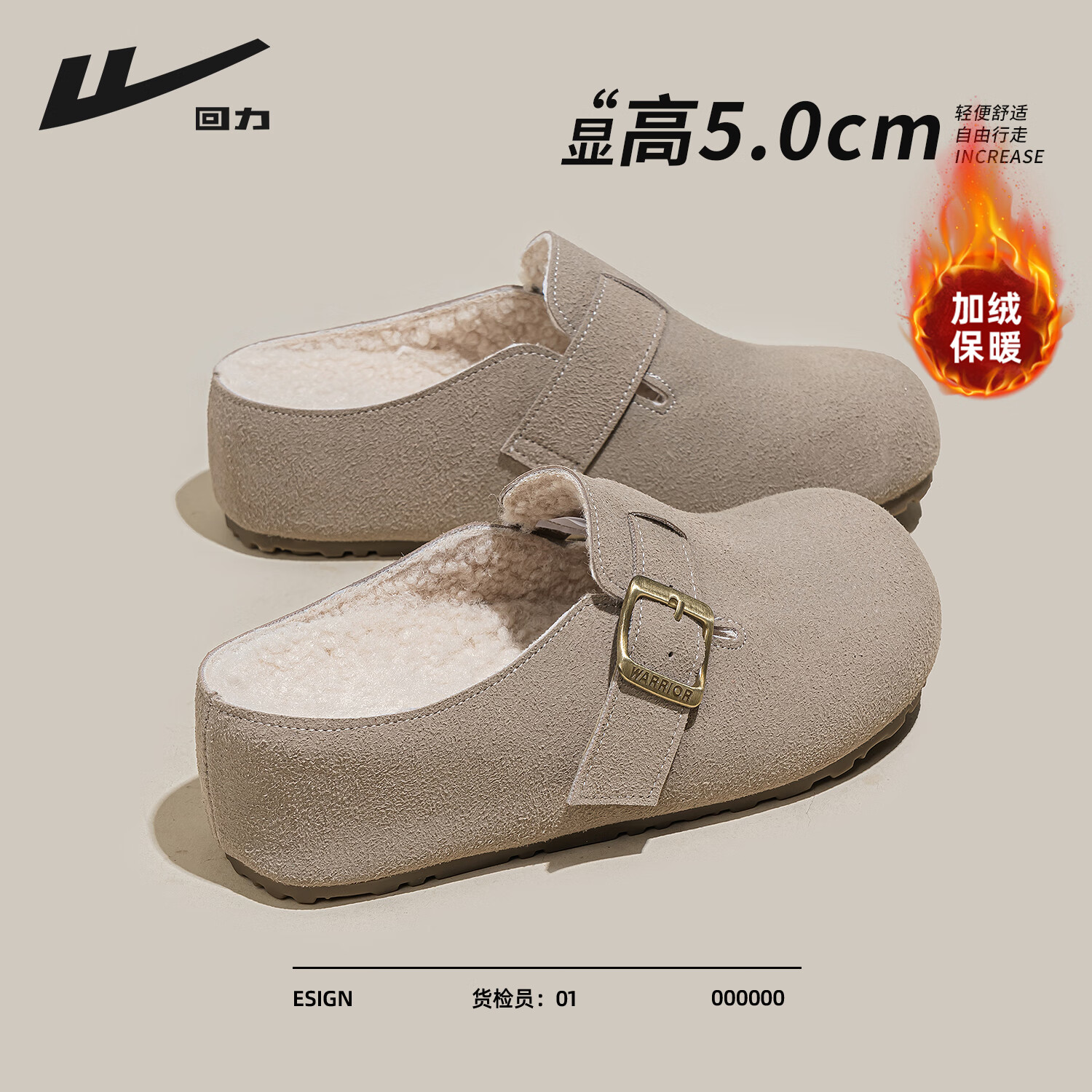 ¥59.9 回力厚底加绒勃肯鞋女鞋2026新款轻便舒适保暖增高显瘦通勤加厚棉鞋 卡其色 35 99.9