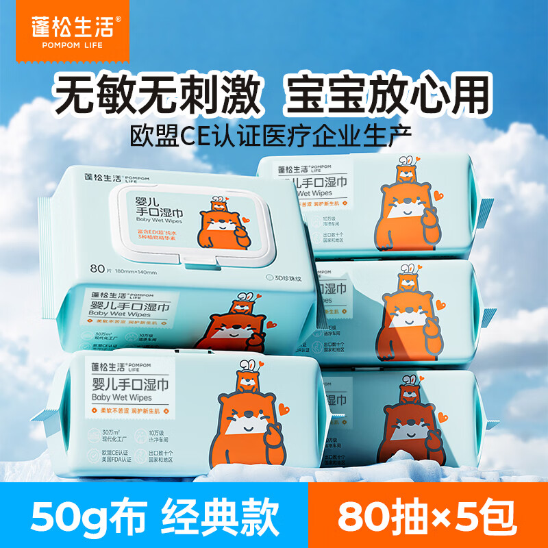 蓬松生活婴儿湿巾大促:80抽5包仅需16.9元,10包低至29.9元
