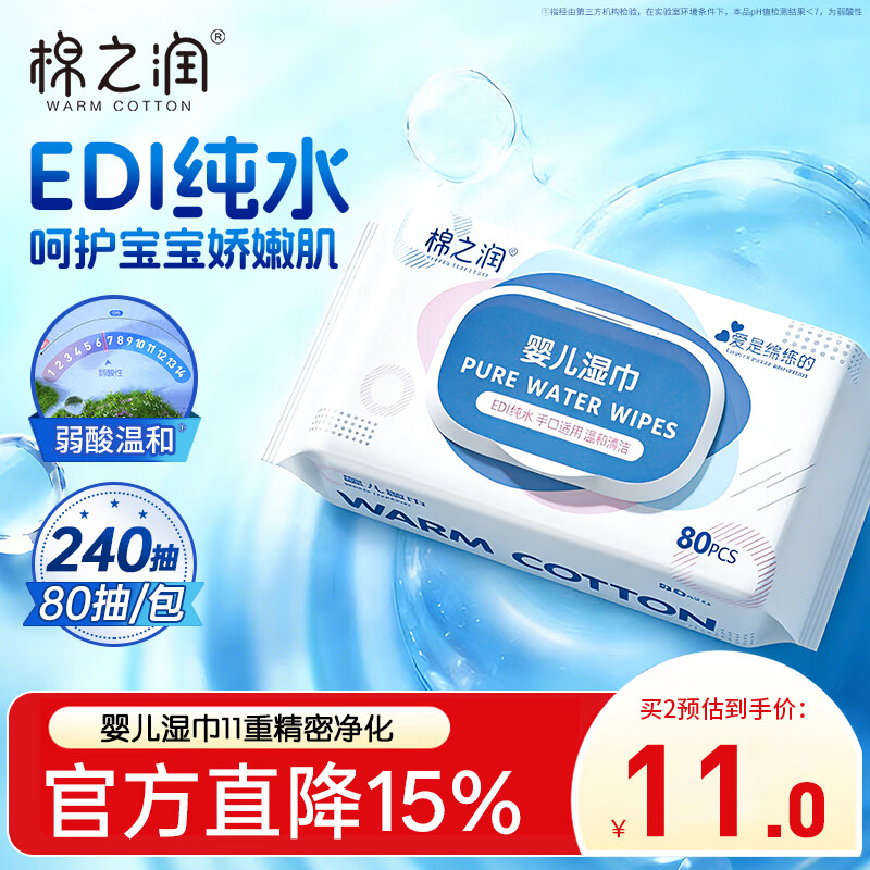 棉之润婴儿手口湿巾80抽*3包 折后仅3.5元/包