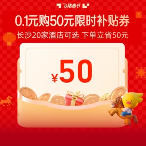 补贴!0.1元抢飞猪长沙五一广场20家优选酒店立减50元