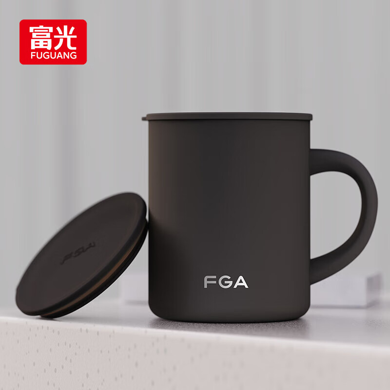 ¥39 富光不锈钢保温杯马克水杯子大容量办公泡茶咖啡男女士便携简约带盖 黑色420ml 49