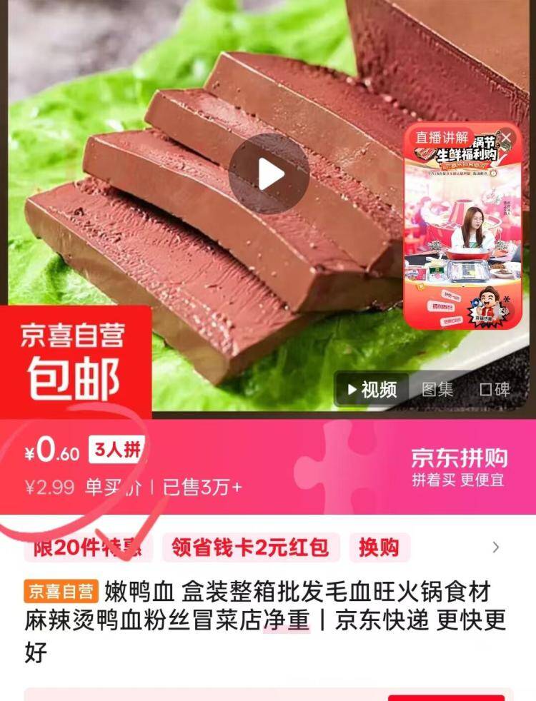 【限时0.6元】嫩鸭血300g盒装!火锅麻辣烫必备食材