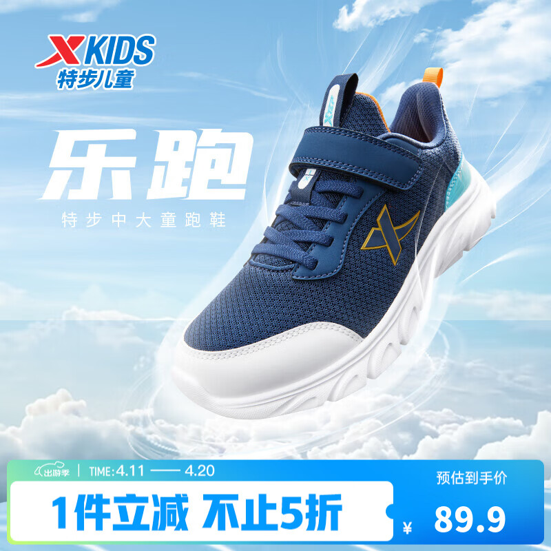 特步儿童魔术贴运动跑鞋,到手仅需83.9元