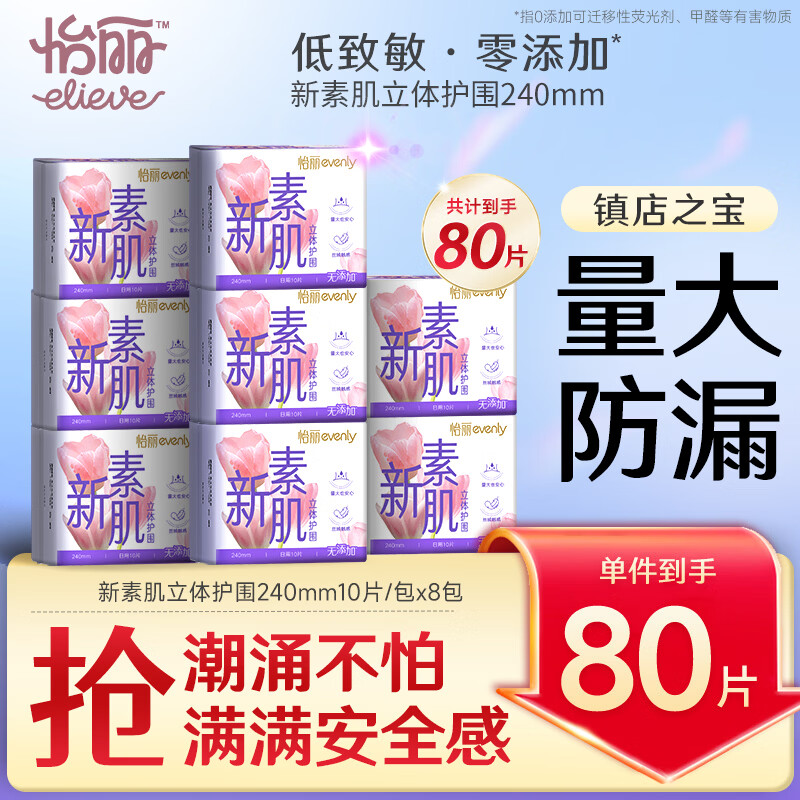 怡丽医护级卫生巾80片装到手38元立返15元卡