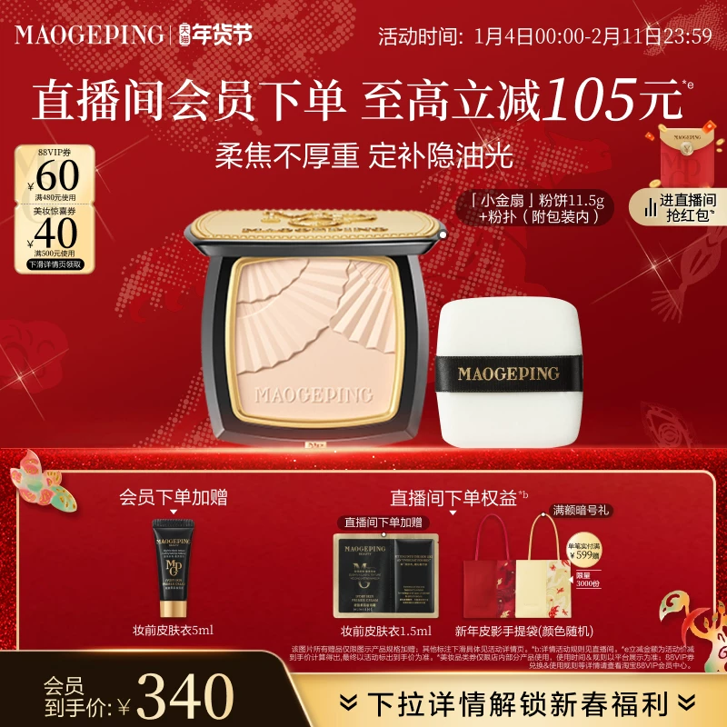 ¥255 凑单185!毛戈平光感柔纱凝颜小金扇粉饼 260