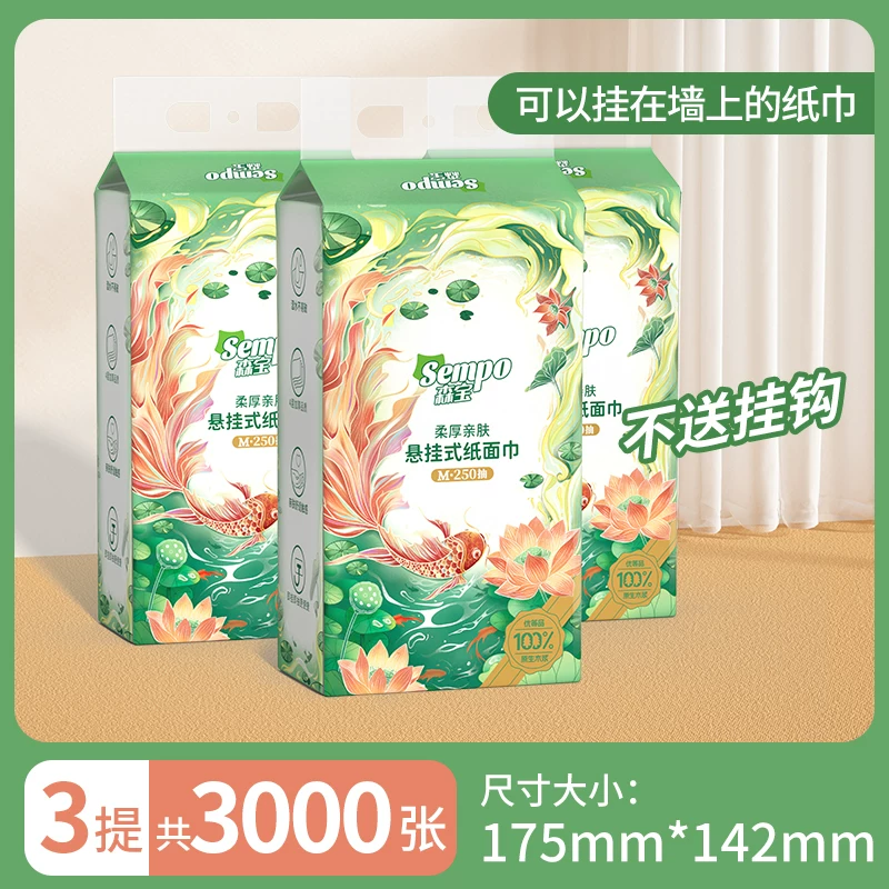 ¥9.9 新品!【3提】森宝挂式锦鲤抽纸1000张*3提 16.9