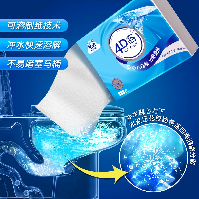 ¥39.9 【百补39.9】洁云4D溶平板纸3层130抽8包 39.9