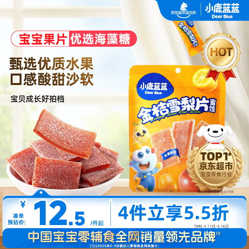 小鹿蓝蓝金桔雪梨片0添加蔗糖 9件仅需42.3元