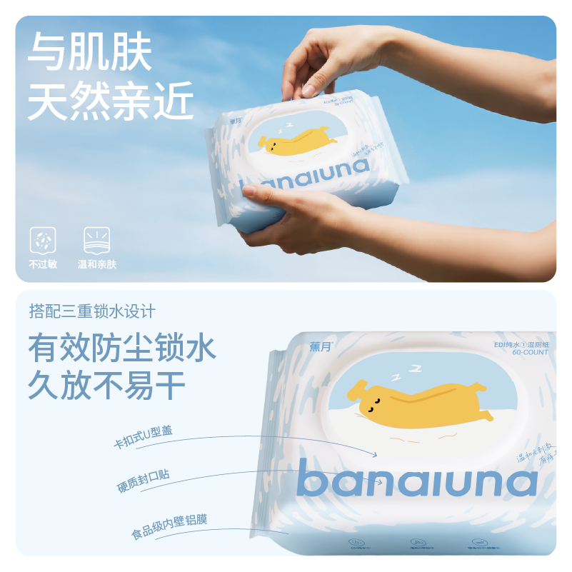 ¥13.9 3包!蕉月纯水湿厕纸大包加厚60抽 21.9