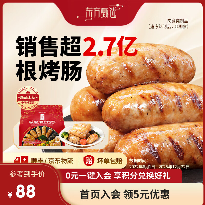 【先入会专享】东方甄选爆汁烤肠80元20根+小笼包34.9元20个,速抢美食!