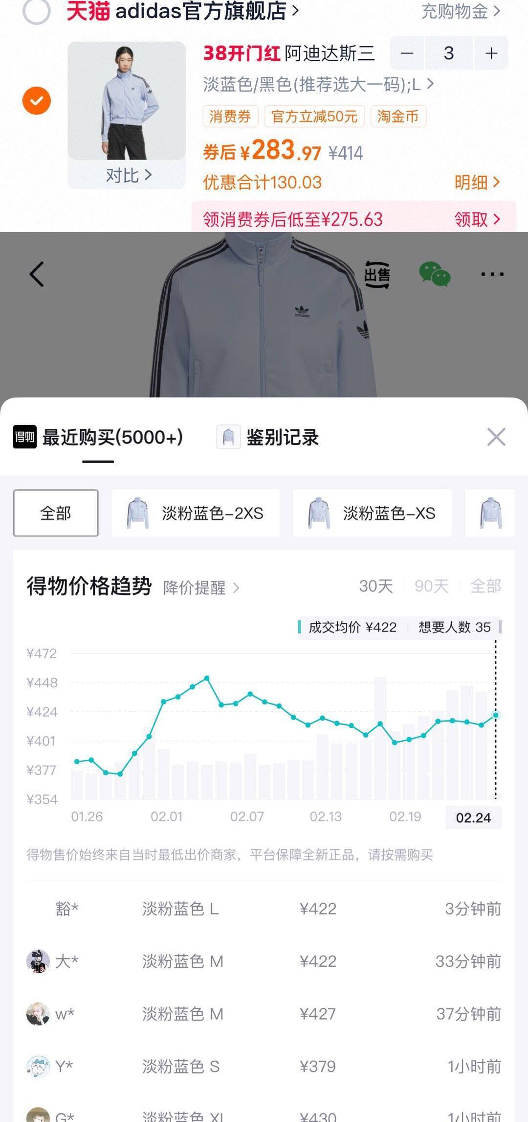 紫色阿迪达斯外套拍3件仅240元抢购中