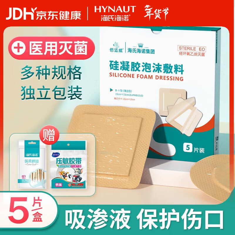 ¥94 海氏海诺 褥疮贴医用无菌老人压疮贴硅凝胶泡沫敷料防水伤口敷料 【15cm*5片】赠棉签+胶带 99