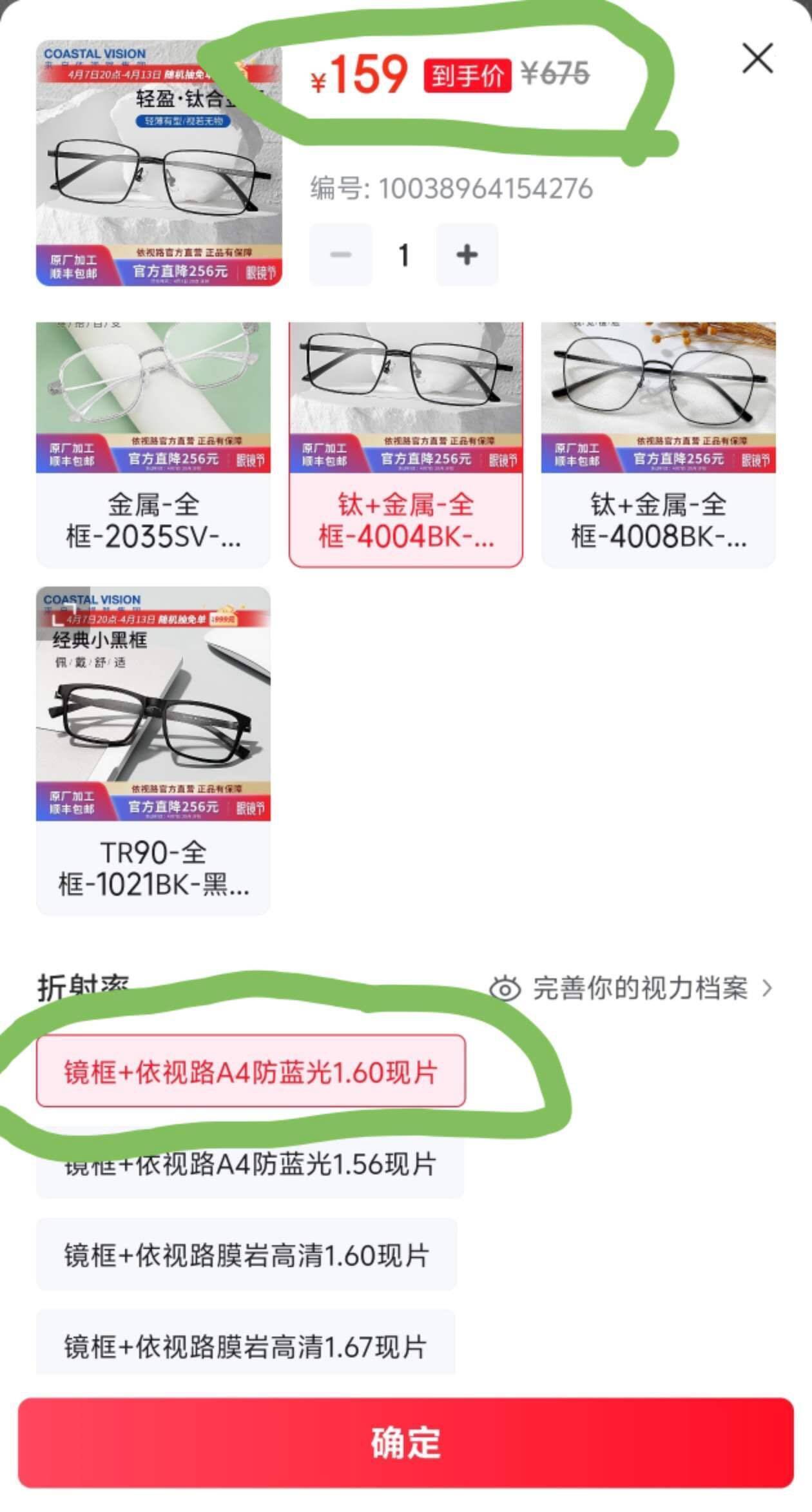 依视路钻晶A4镜片镜框仅需159元