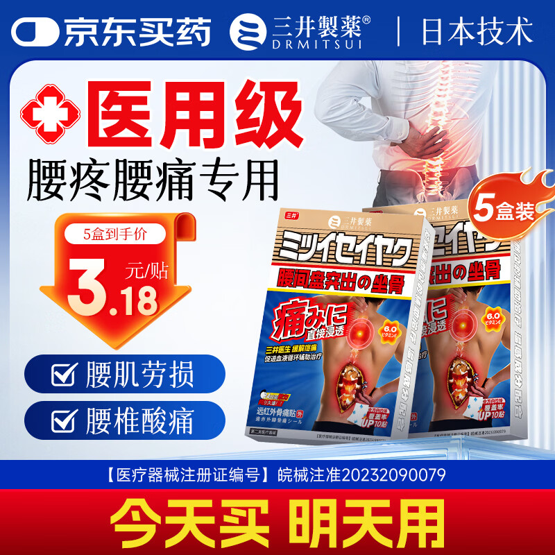三井制药腰椎膏药贴50贴大促!89元到手 单贴仅1.7元