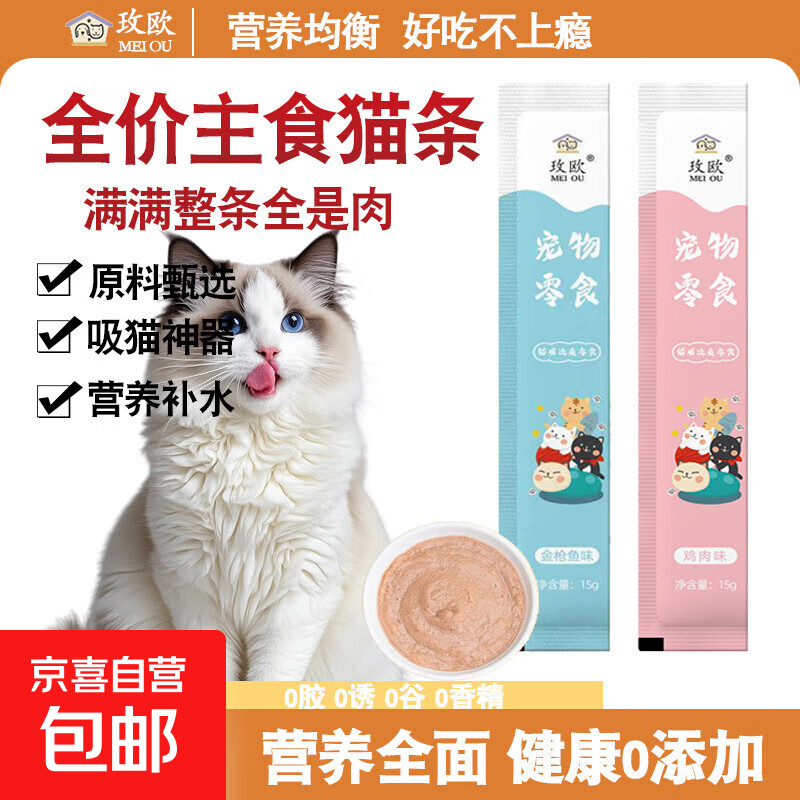 10条猫咪零食仅0.41元!拼团特惠,鸡肉金枪鱼混合装
