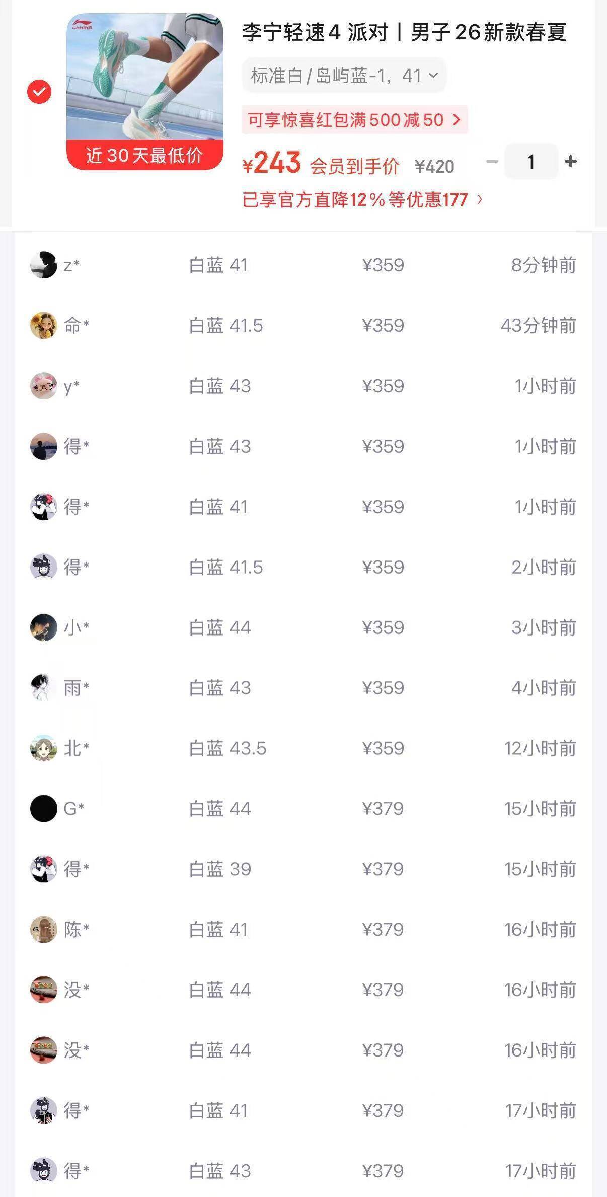 李宁轻速4运动鞋仅229元!首购礼金42元,速抢到手价