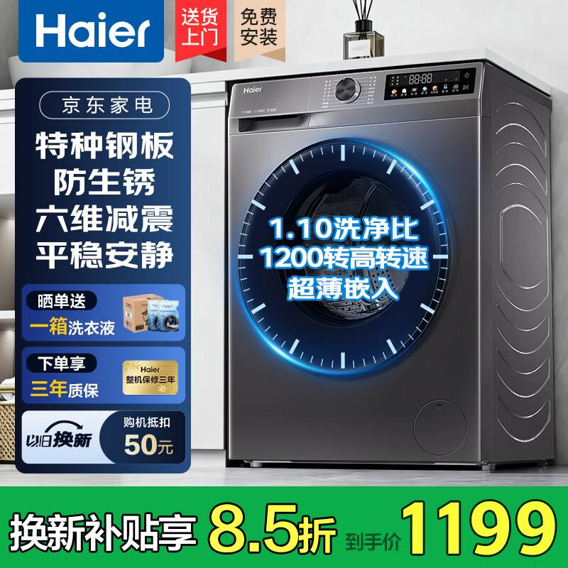 海尔10kg洗烘一体洗衣机到手1411元