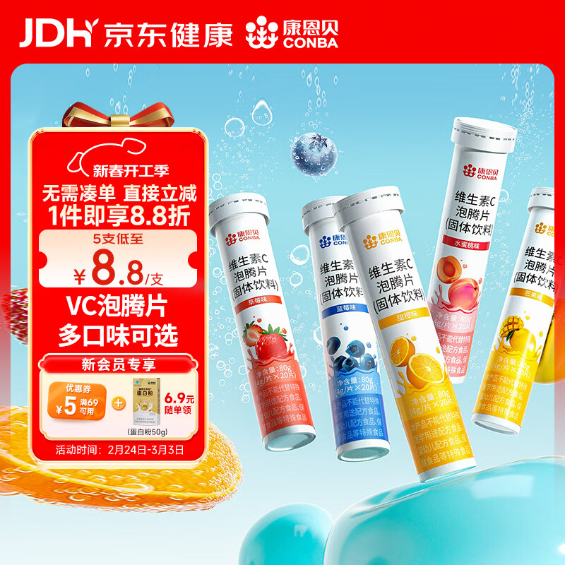 【限时抢购】康恩贝维生素C泡腾片20片*5支装,PLUS会员专享价仅35.42元!5种口味任选