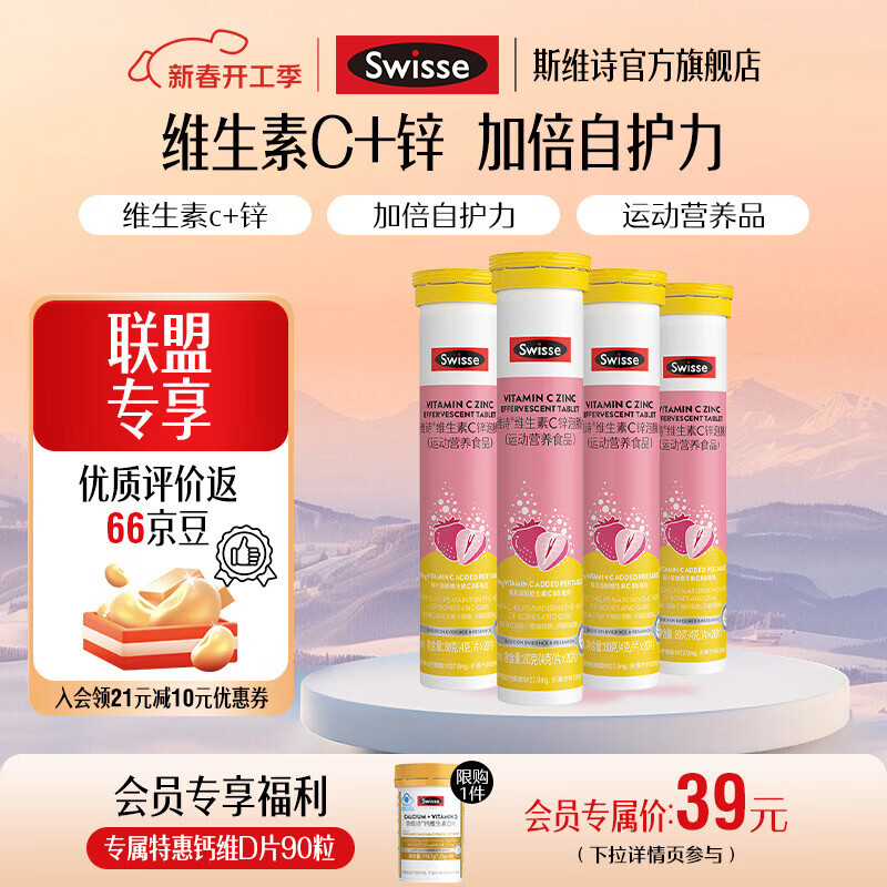【联盟专享】50元到手斯维诗维生素C锌泡腾片4支装!清新草莓味运动营养食品
