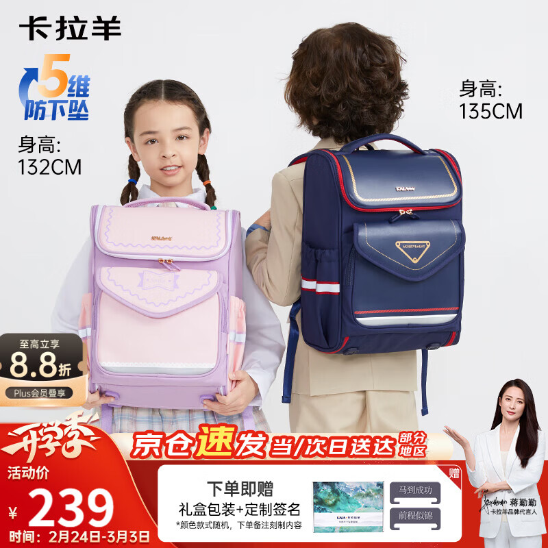 京东Plus会员专享!卡拉羊减负书包满200减25,184元起抢护脊健康书包