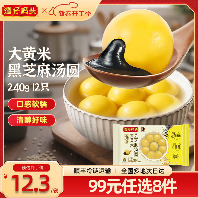 年货清仓特惠!湾仔码头大黄米黑芝麻汤圆任选7件仅49.92元,单袋低至7.13元