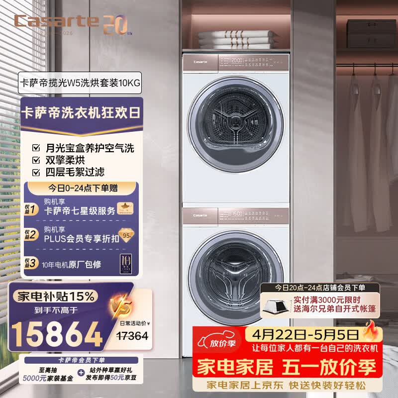卡萨帝揽光W5洗烘套装 到手价4382.01元