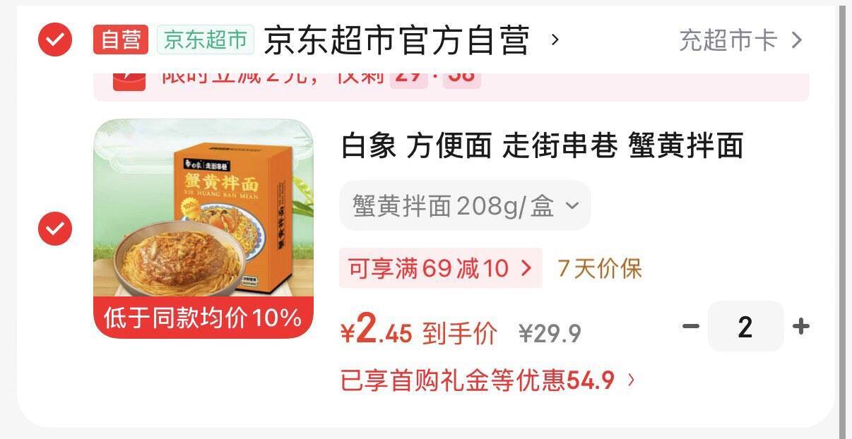 白象蟹黄拌面2件仅4.9元!首购立减2元超值特惠
