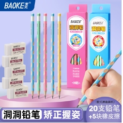 9.9元包邮!宝克 .学生正姿洞洞铅笔组合 20支铅笔+5块橡皮