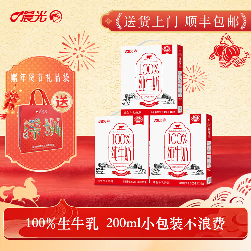 晨光纯牛奶17.6元/箱!3箱仅53元抢鲜购